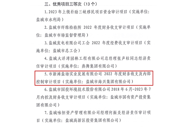 近期,為進一步提高內(nèi)部審計工作質(zhì)量,充分發(fā)揮優(yōu)秀內(nèi)部審計項目的典型示范和引領(lǐng)作用,鹽城市審計局、鹽城市內(nèi)部審計協(xié)會在全市范圍內(nèi)組織開展優(yōu)秀內(nèi)部審計項目征集評選活動。2023-12-04 -